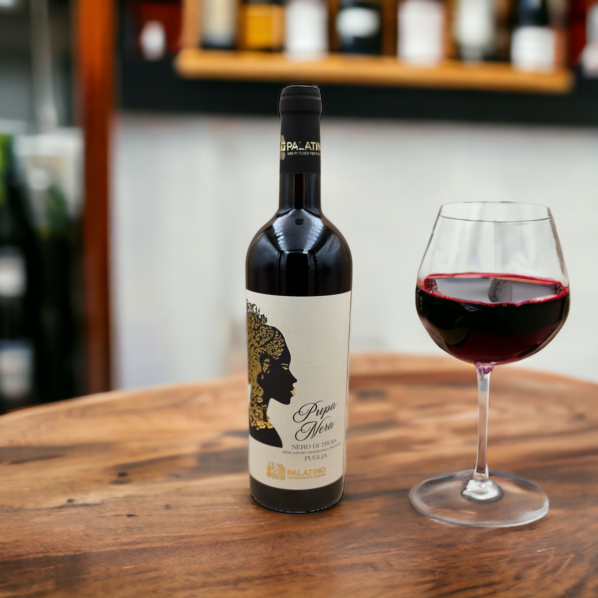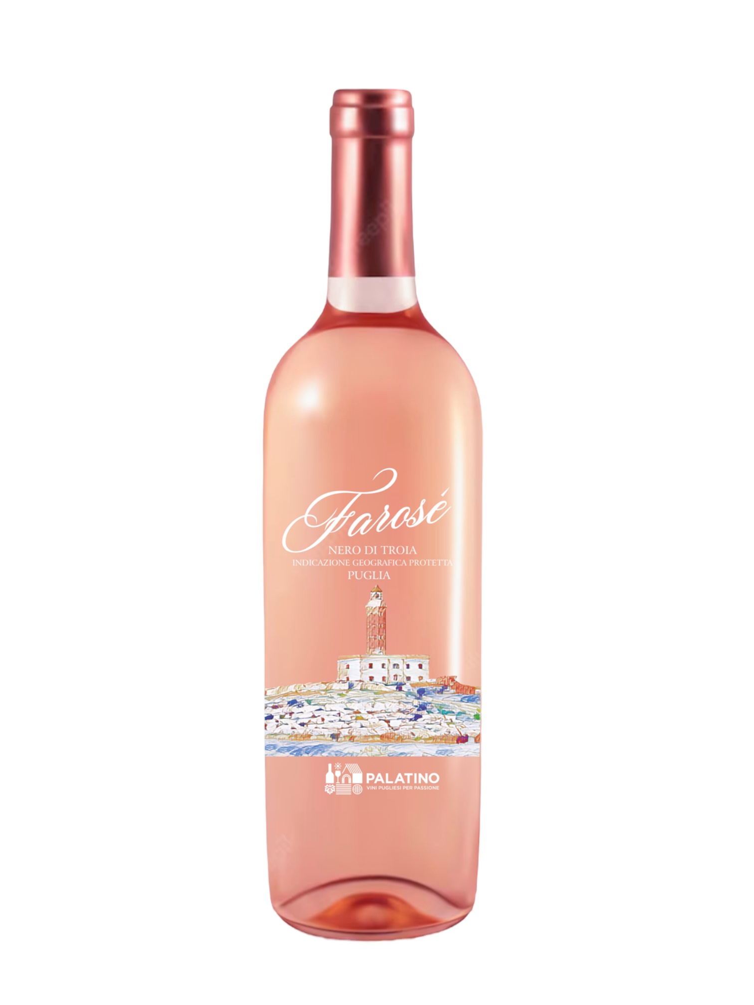 La mission aziendale è quella di essere un punto di riferimento del vino pugliese nel mercato italiano ed europeo, producendo una selezione accurata di vini autentici ed eleganti, elaborati con etica, innovazione e rispetto del territorio. Palatino propone tre etichette, tutte IGP Puglia: Pupa Nera, Nero di Troia in purezza, Anima Bianca, Bombino Bianco al 100% e Farosè, Nero di Troia Rosato. Il Nero di Troia o Uva di Troia è coltivata su terreni calcarei e ghiaiosi che permettono alle uve di essere ricche di polifenoli, conferendo al Nero di Troia una tipica intensità colorante ed olfattiva e un giusto tenore alcolico.